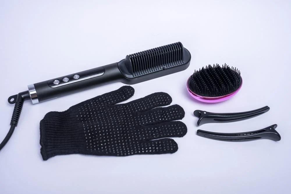 ج: نعم، يحتوي الجهاز على قفاز حماية من الحرارة، مشط، وكلبسات للشعر لتسهيل عملية التصفيف.