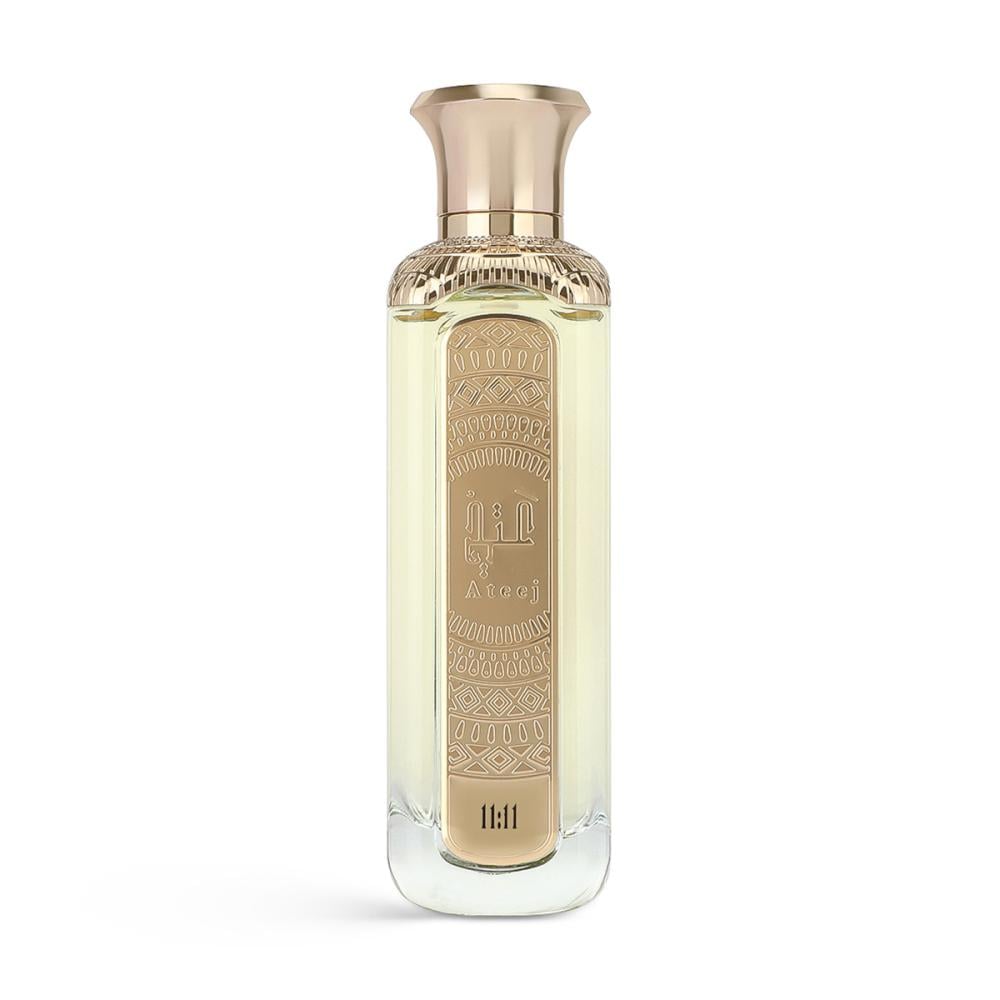 11:11 من عتيج هو عطر شرقي - خشبي يتميز بتركيبة غنية تجمع بين الروائح الدافئة والتوابل العميقة مع مكونات خشبية وجلودية تعزز طابعه الفخم والجريء.