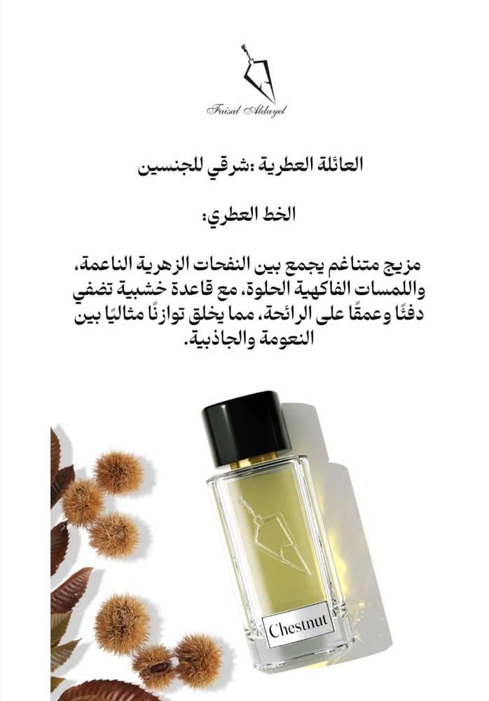 ✨ عطر Chestnut هو اختيارك الأمثل لتجربة فاخرة تجمع بين الغموض والرقي، تناسب كل الأوقات والمناسبات.