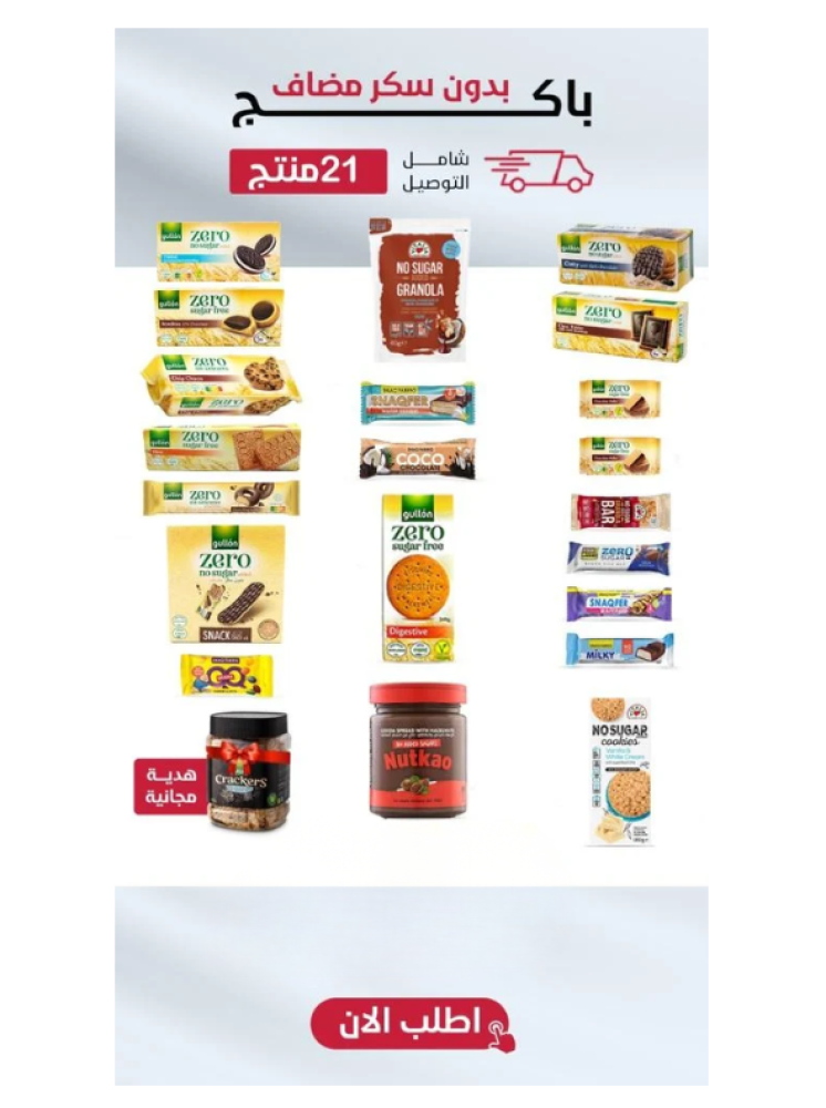 باكج مميز بدون سكر مضاف يحتوي على 21 صنفًا من المنتجات التي تم اختيارها بعناية لتلبية احتياجاتك الصحية والذوقية. هذا الباكج مثالي لأولئك الذين يبحثون عن خيارات خالية من السكر المضاف، مما يساعد في الحفاظ على نظام غذائي متوازن دون التأثير على النكهة أو الجودة.